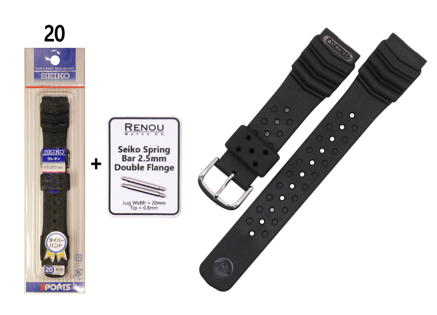This is a brand new, genuine Seiko DB70BP diver’s strap designed to fit Seiko watches with a 20mm lug width, including vintage models like the Seiko Monster & SKX. Supplied in the original packaging as shown in the listing images. Double flange 2.5mm spring bars are included.