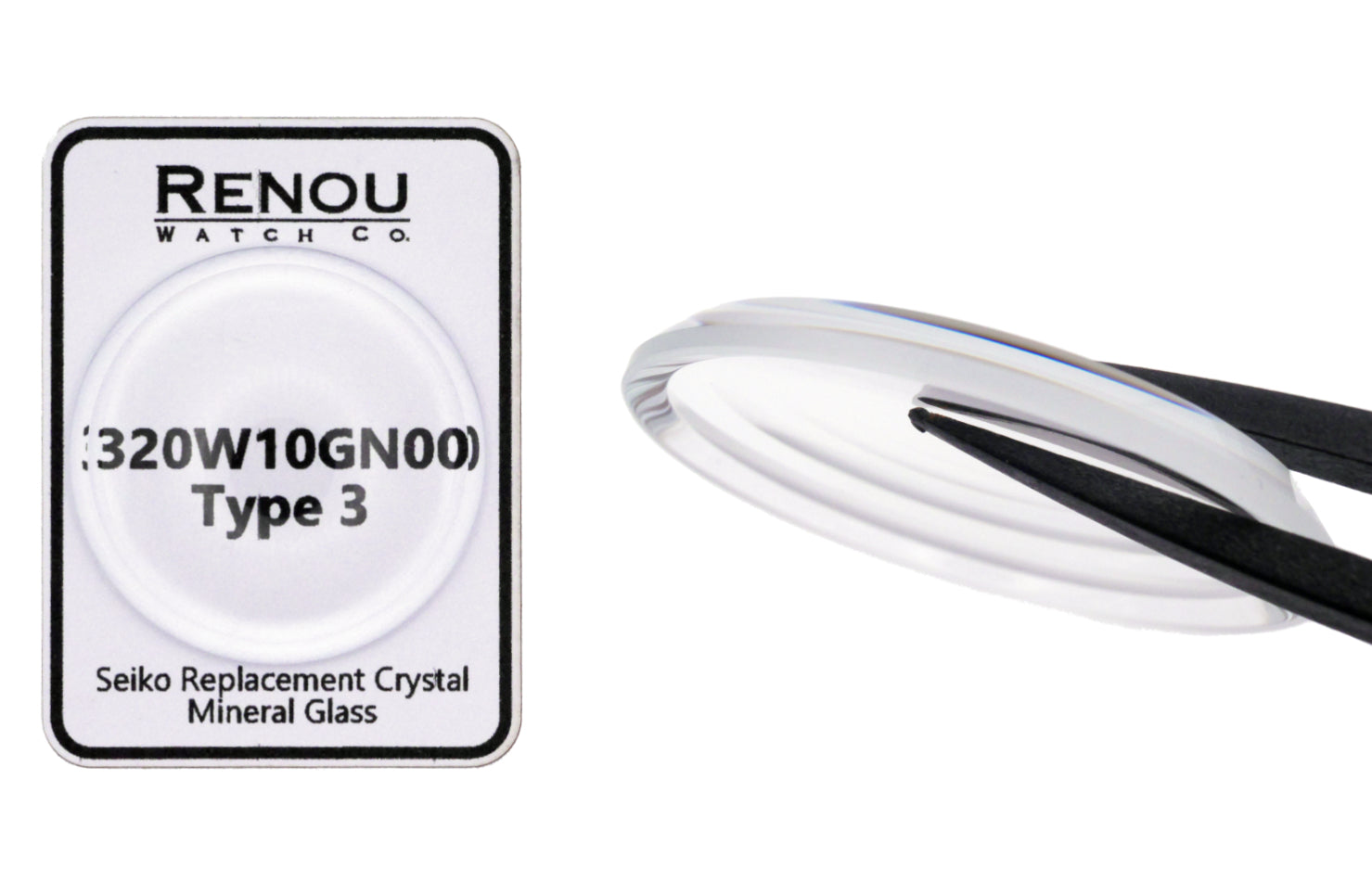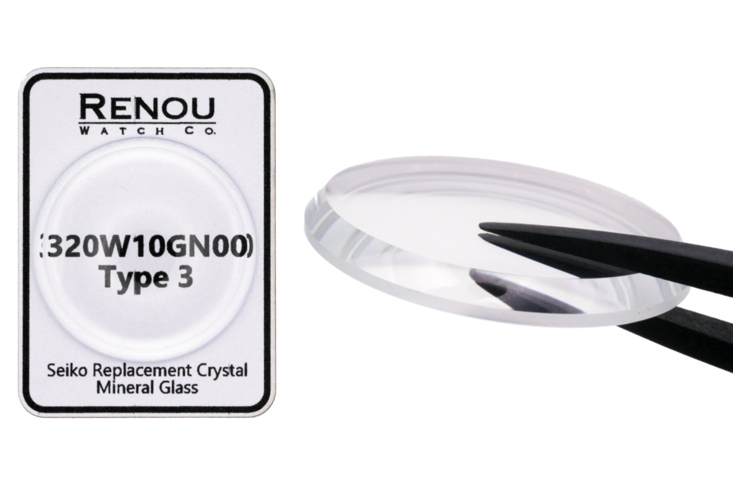 This is a Seiko reproduction crystal (not New Old Stock), designed as a newly manufactured replacement for Seiko crystal part number 320W10GN00.