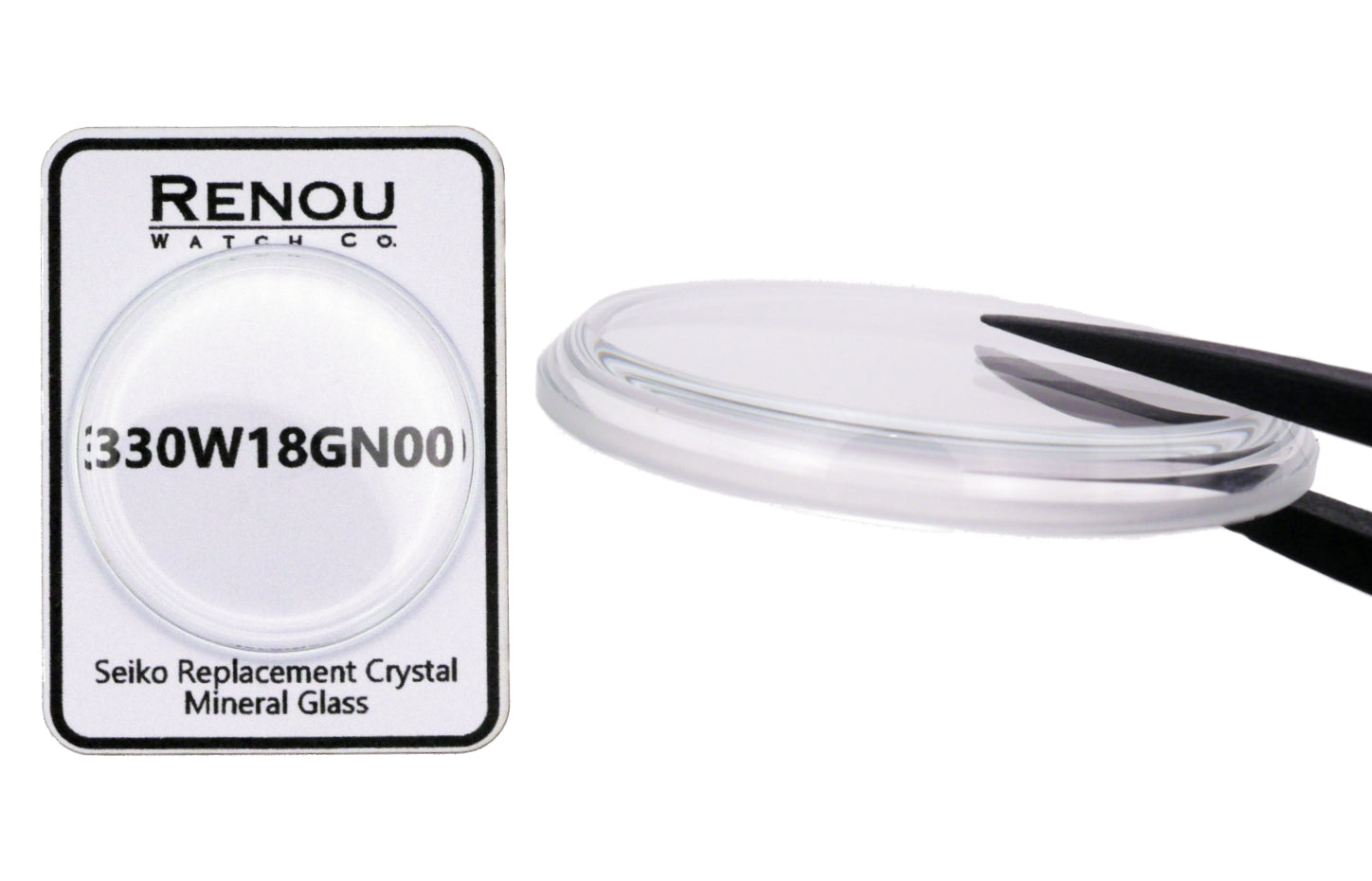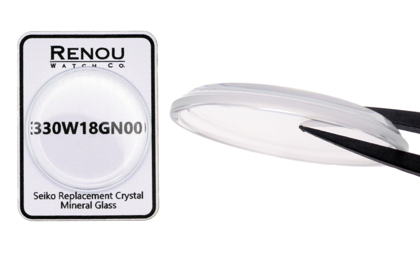 This is a Seiko reproduction crystal (not New Old Stock), designed as a newly manufactured replacement for Seiko crystal part number 330W18GN00. The watches shown in the listing photos are for demonstration purposes only and are not included. They simply highlight how the Renou Watch Co. crystal looks when installed on these specific models.